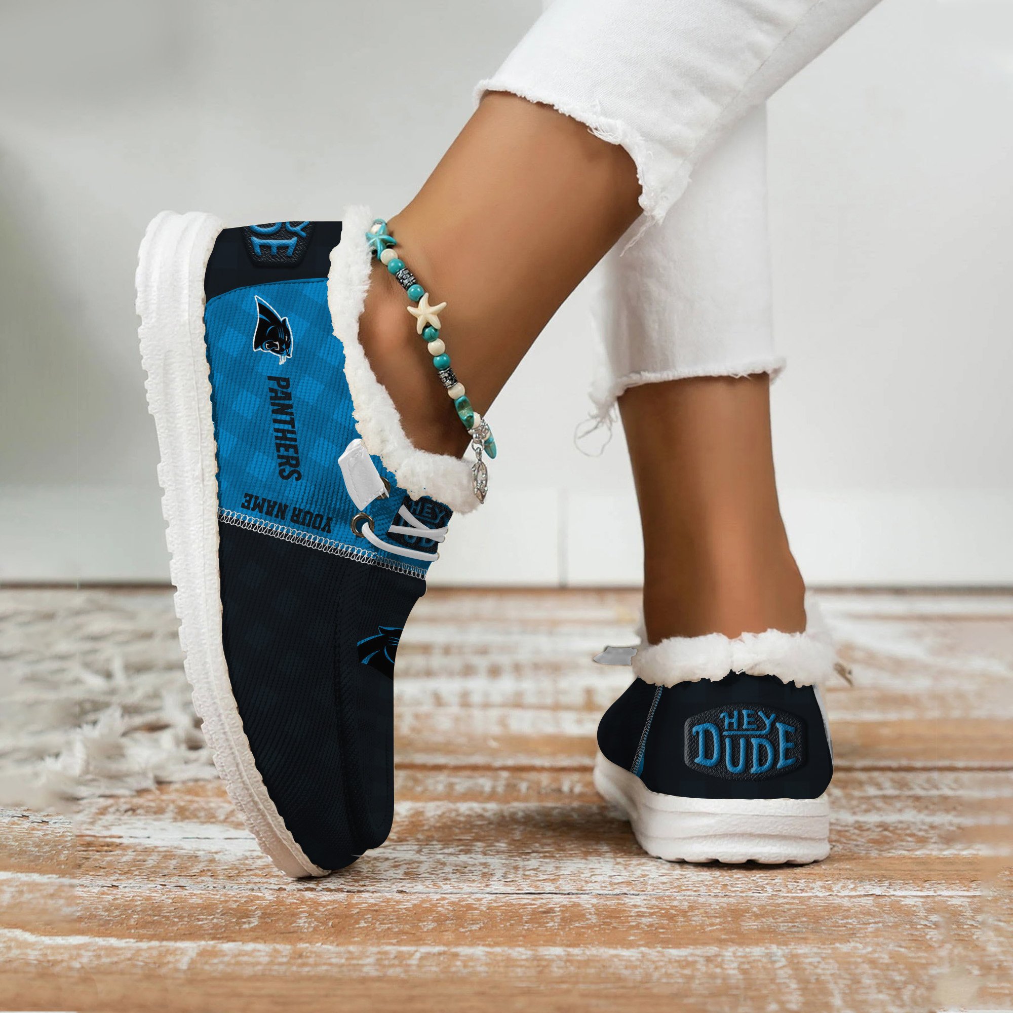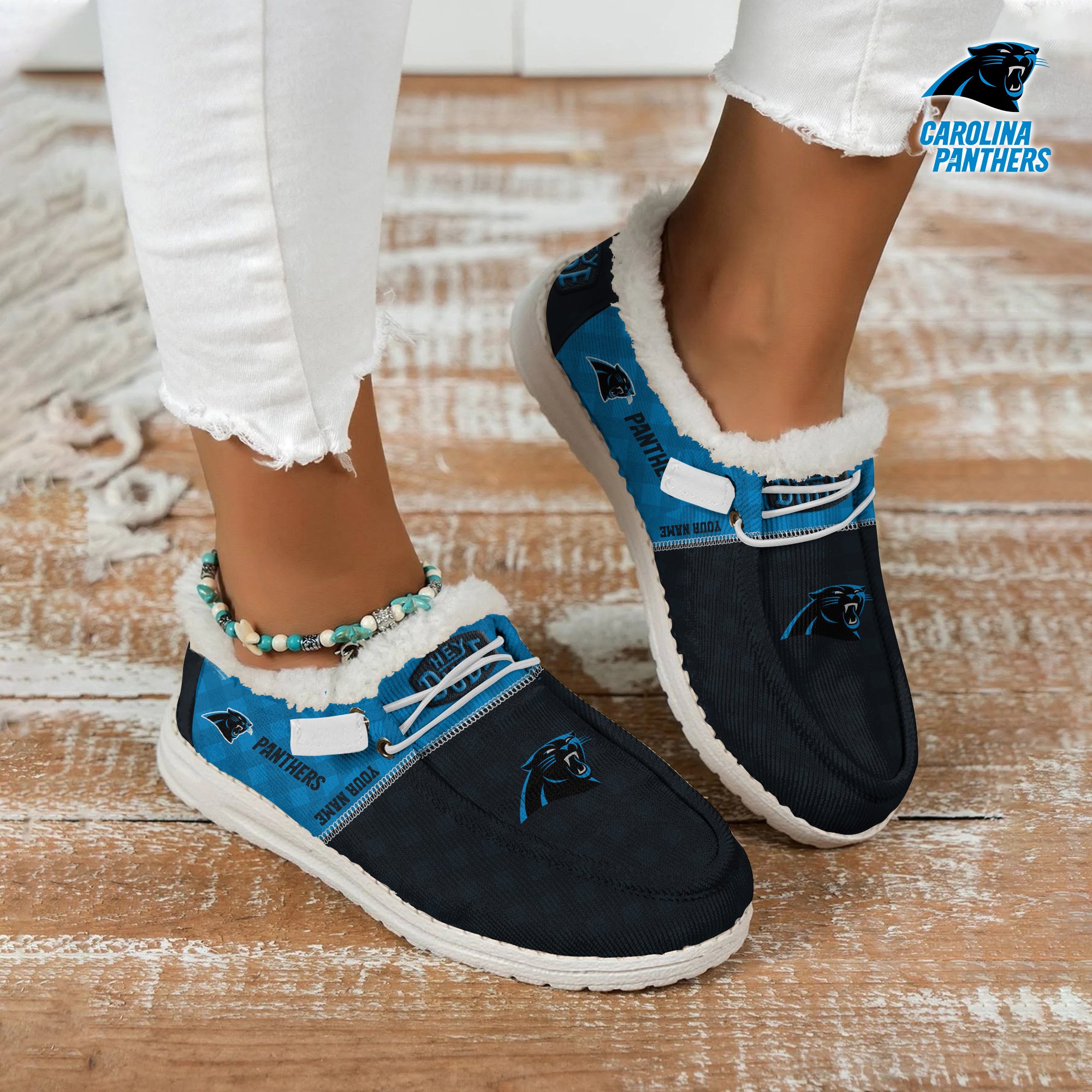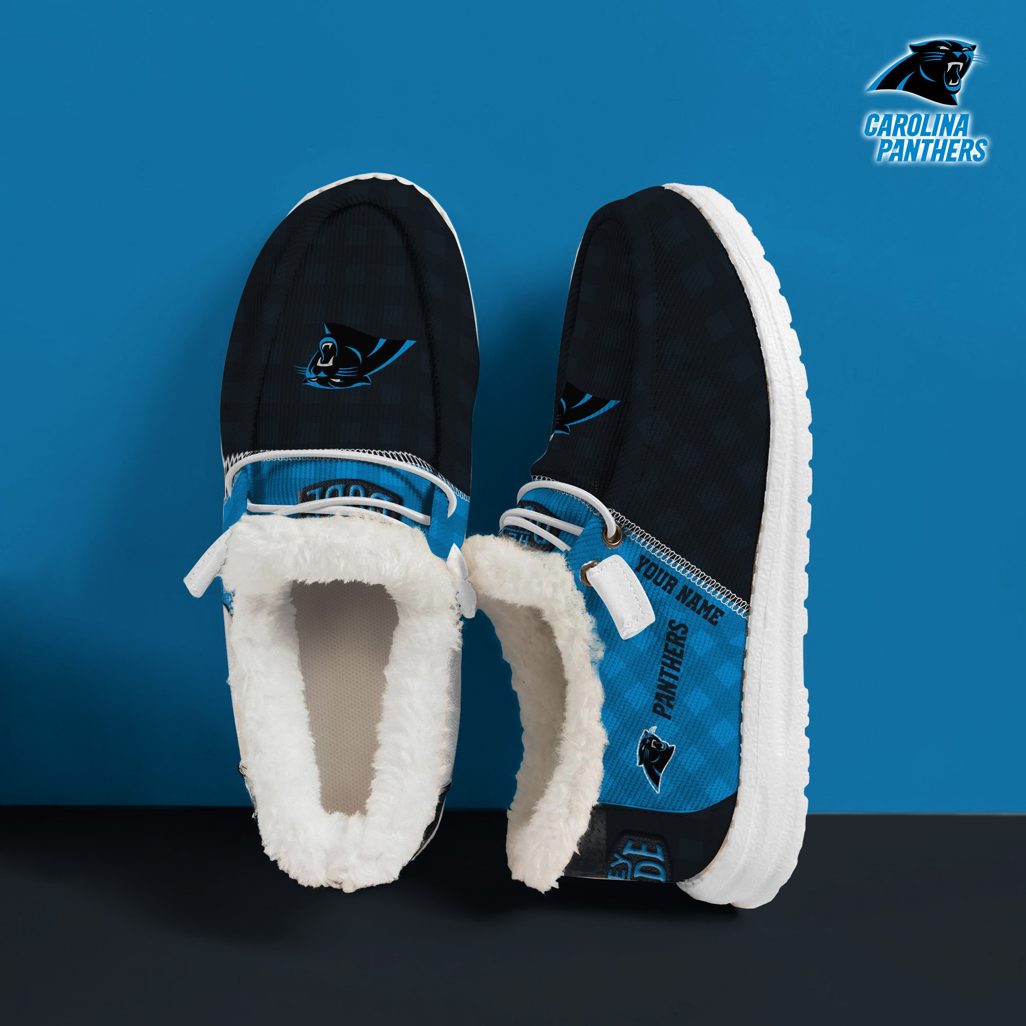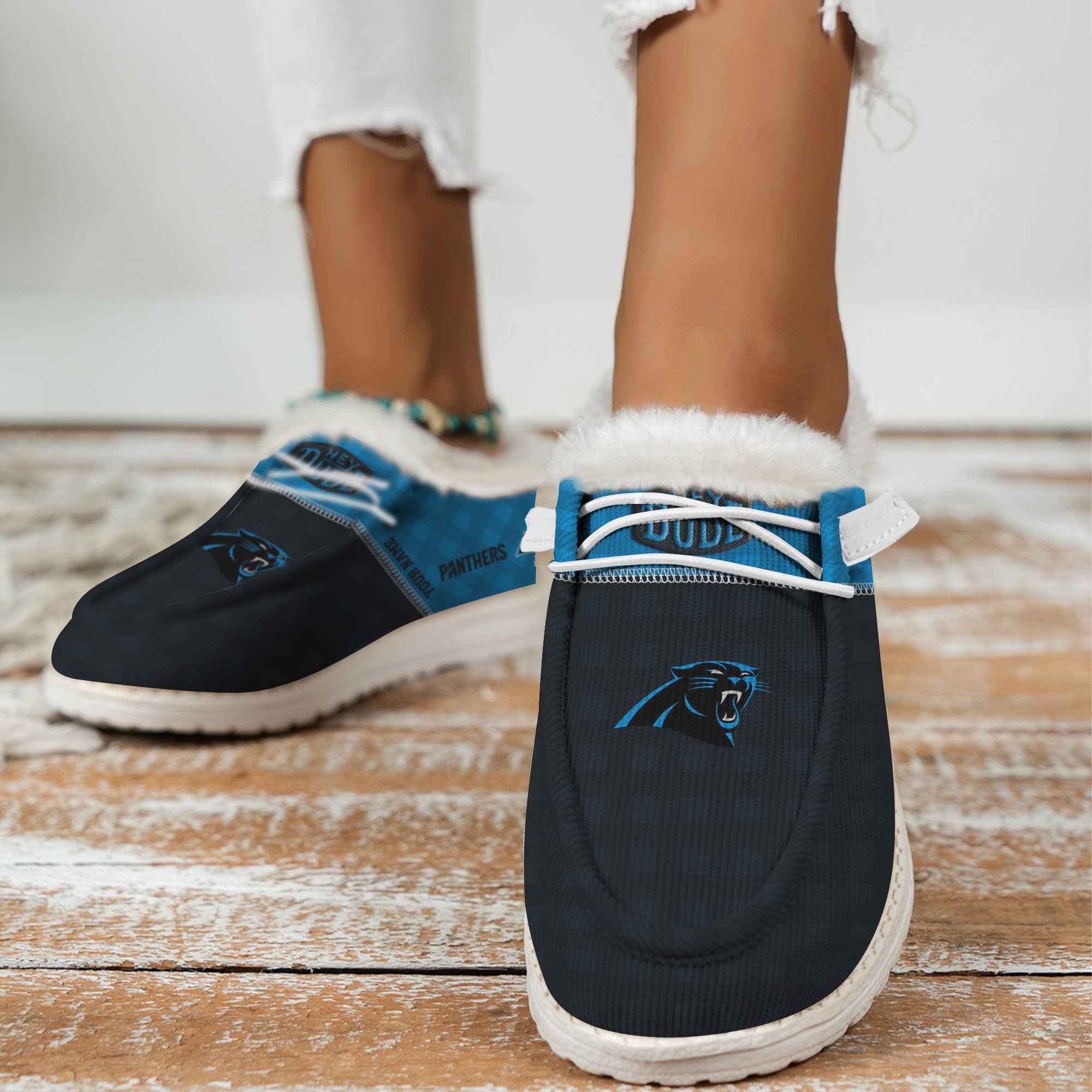 JWFancy Carolina Panthers Personalized Hey Dude With Warm Fur Lining Shoes For Men And Women