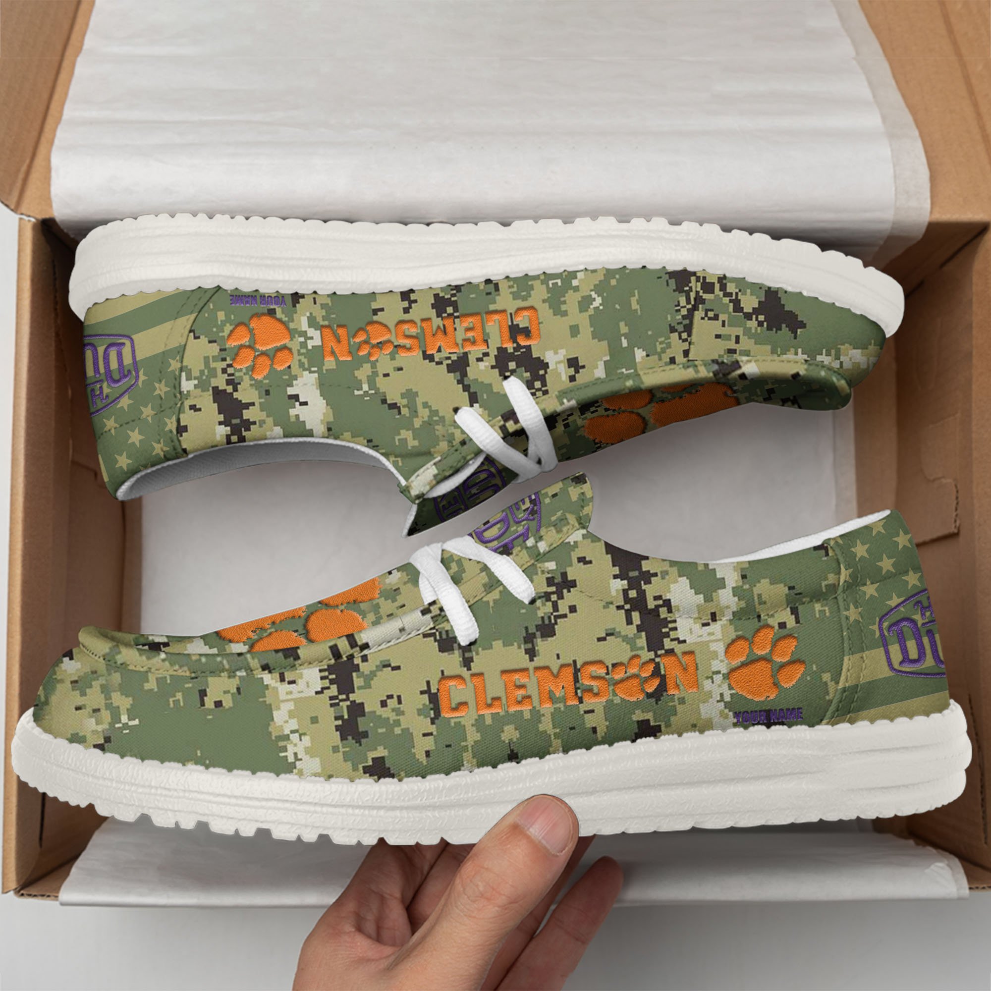 JWFancy Clemson Tigers Hey Dude Shoes Wally Men’s Lace Up Loafers Comfortable For Men And Women