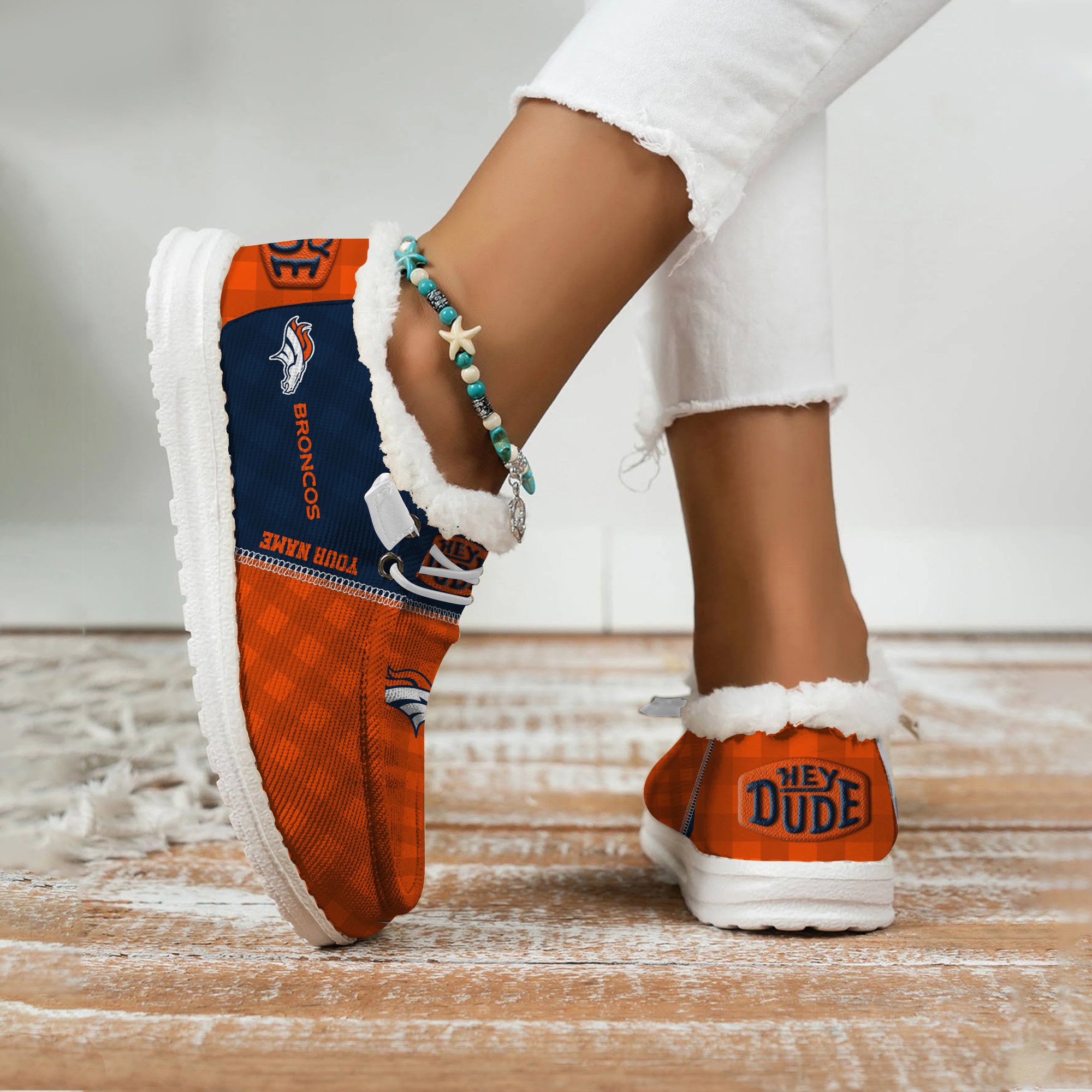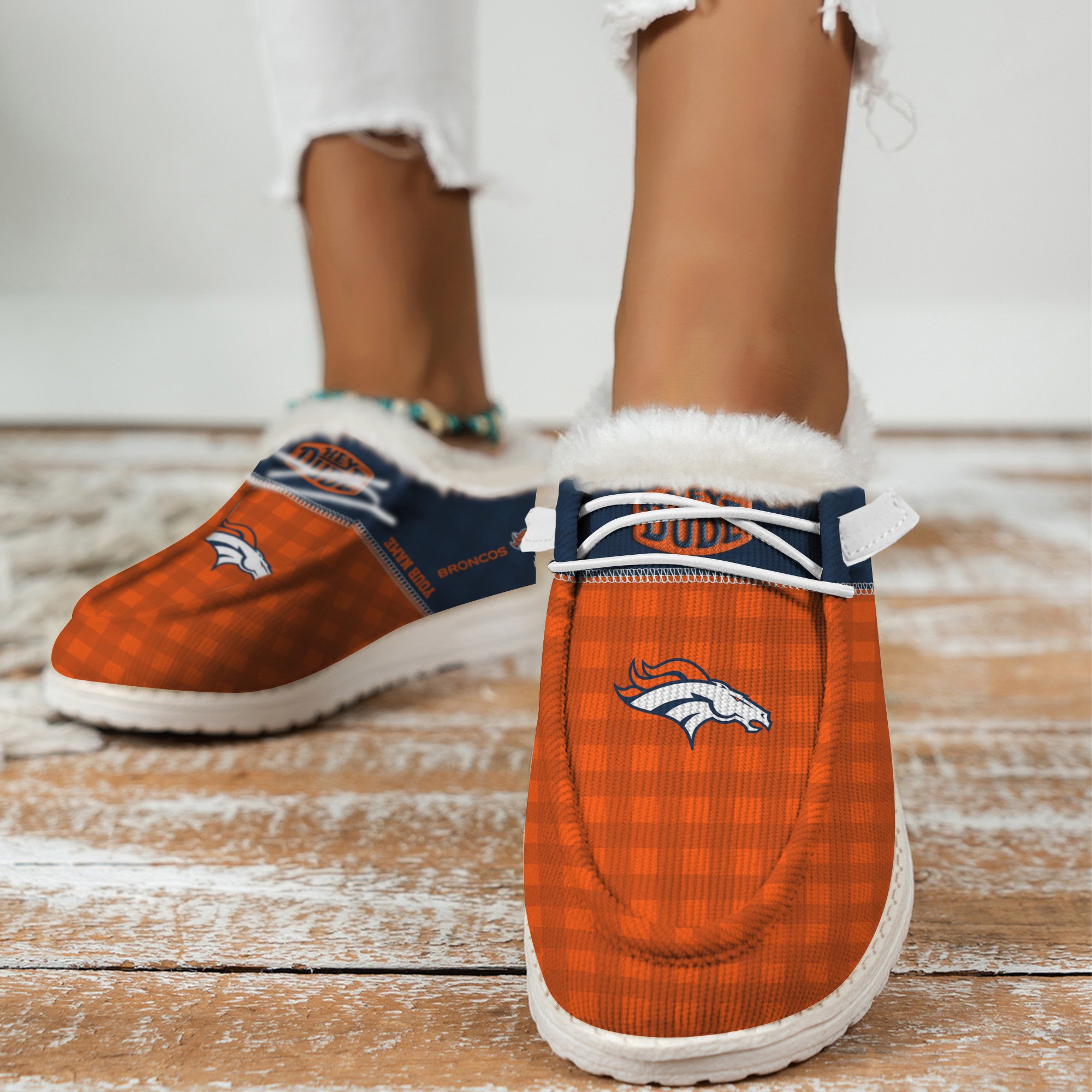 JWFancy Denver Broncos Personalized Hey Dude With Warm Fur Lining Shoes For Men And Women